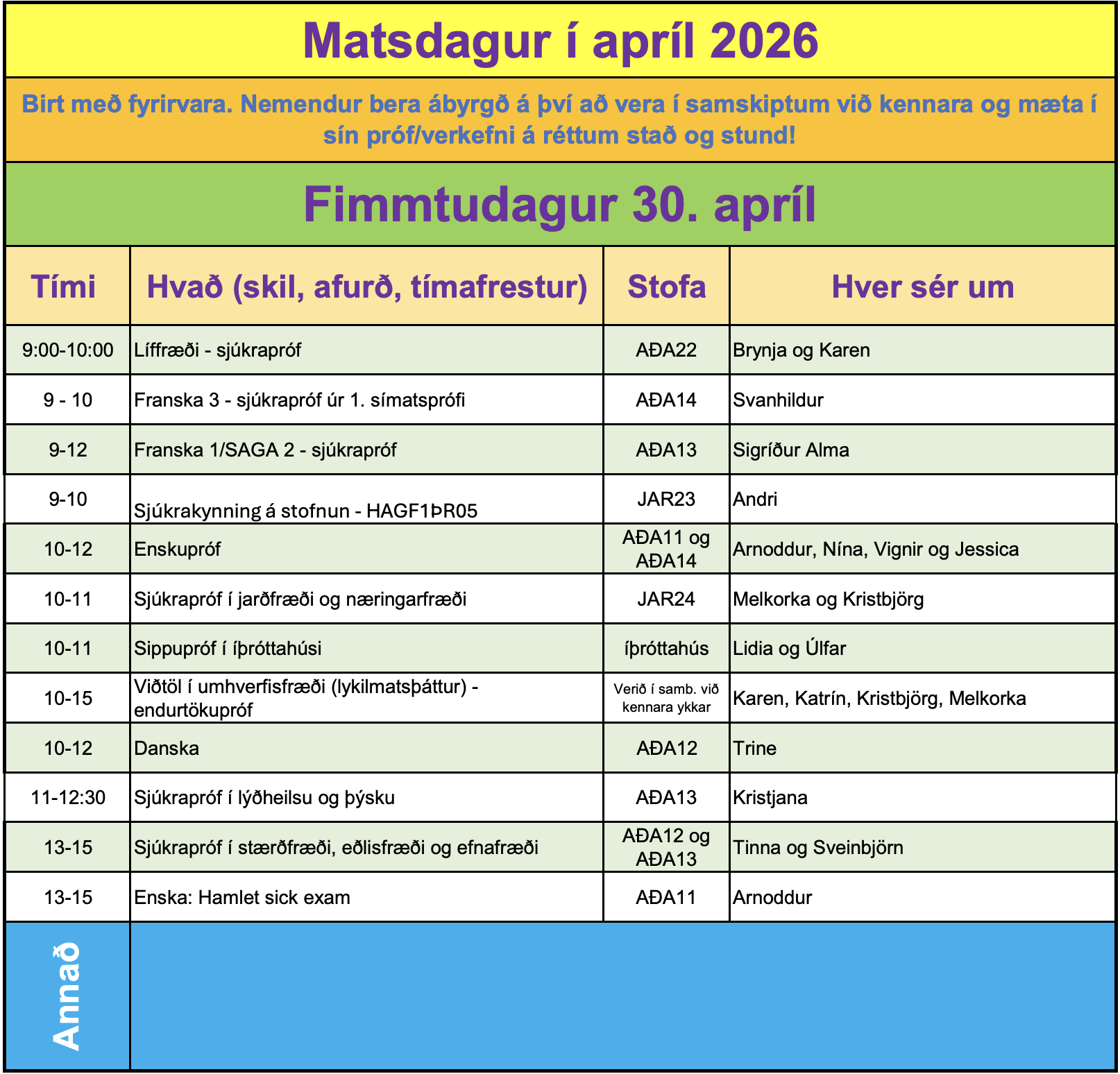 - Námsgreinar og námsmat