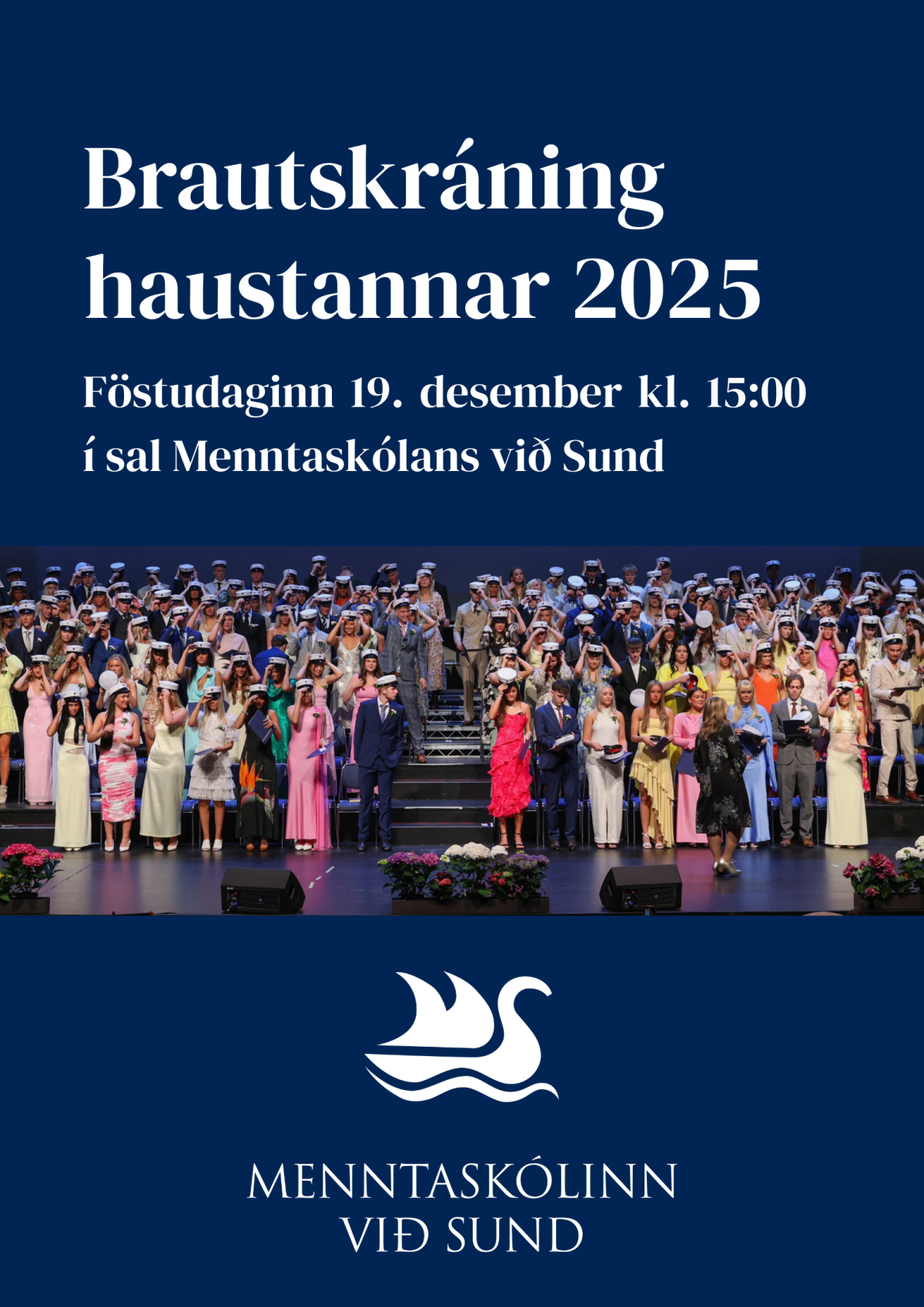 Brautskráning haustannar fer fram í sal Menntaskólans við Sund föstudaginn 19. desember kl. 15.